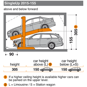 Idéalement, vous utilisez la plateforme supérieure pour le stationnement à long terme tels que les voitures classiques et l’espace inférieur pour le stationnement à utilisation fréquente.